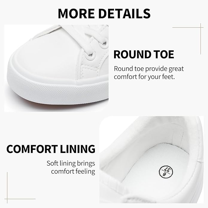- 【Easy to Match】:As the most versatile shoes, white shoes can be matched with jeans, shorts,dress and so on, it can even as dress shoes.